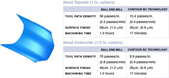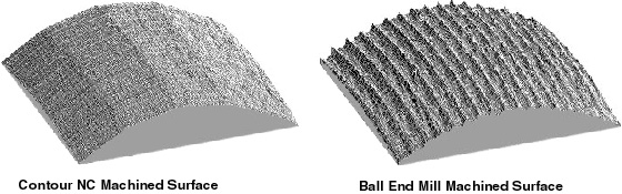 a comparison between Contour Numerical Control software and commercial ball end mill techniques.